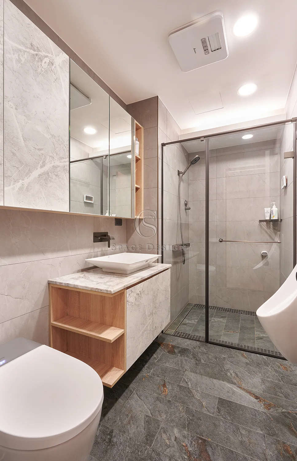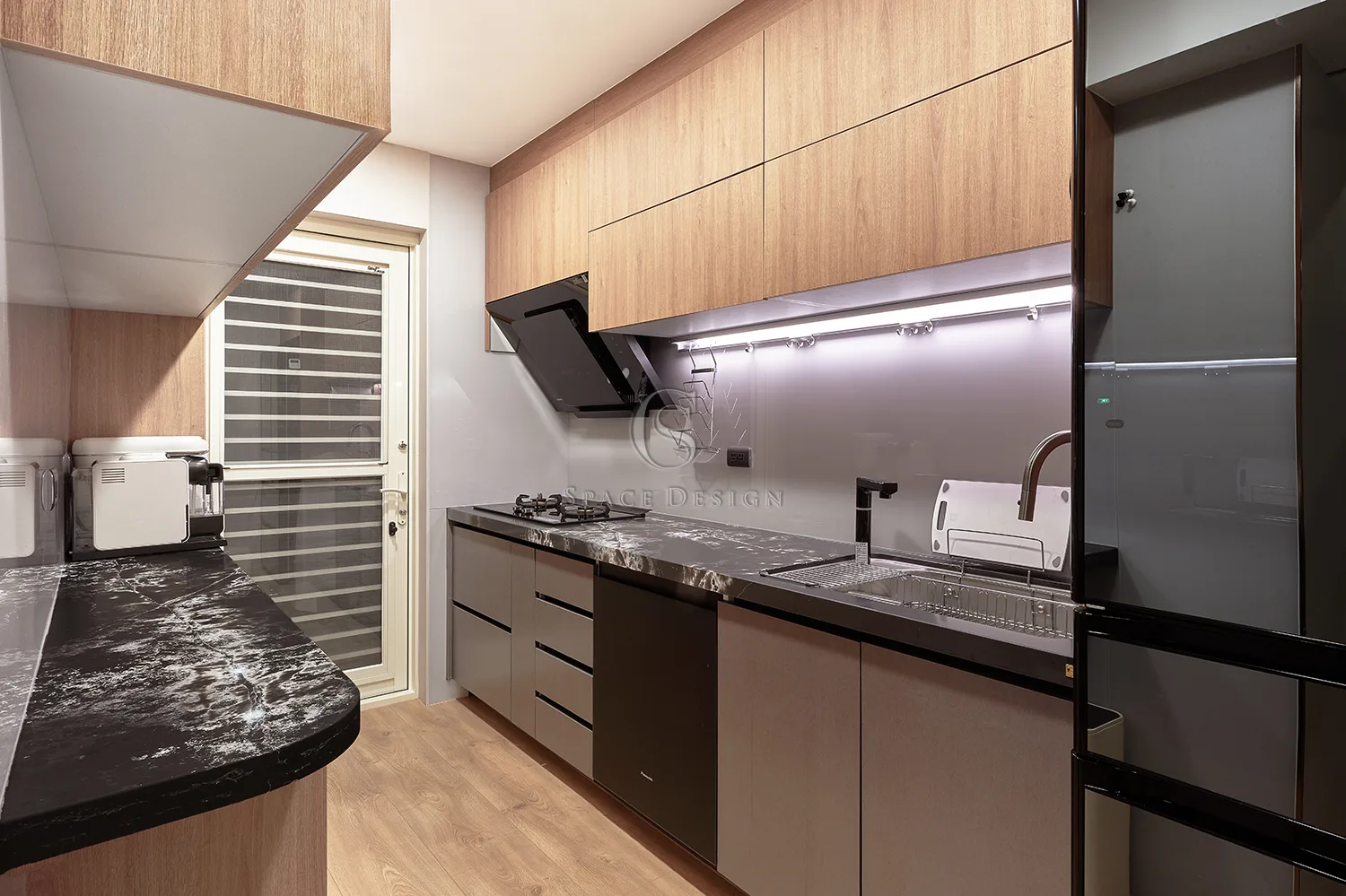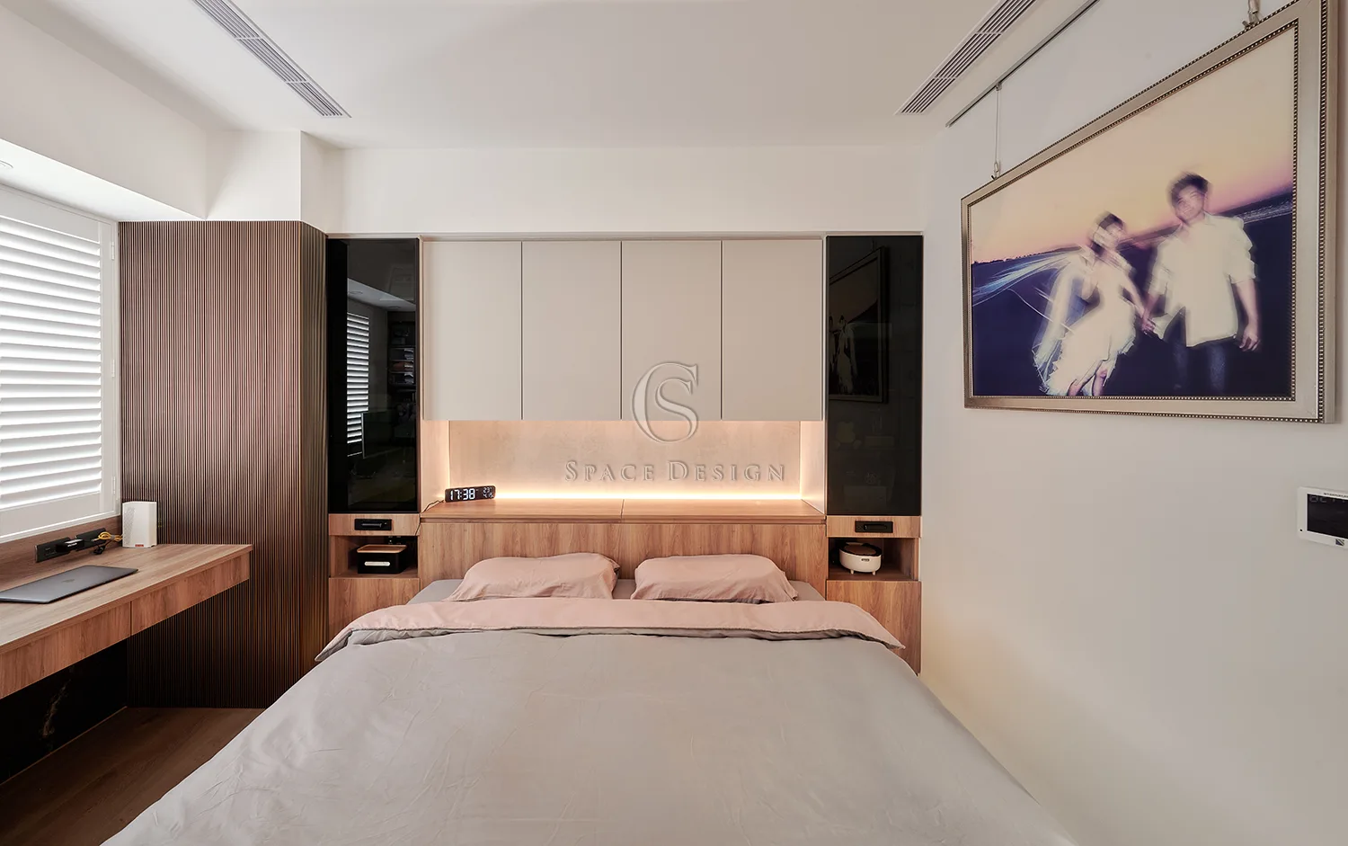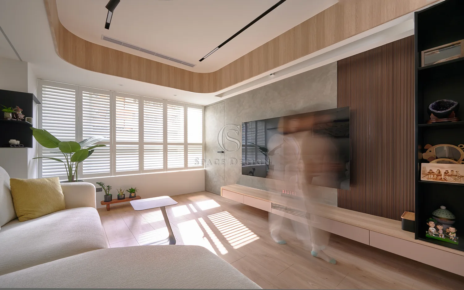 藉由低光澤、淺色調的材料語彙,與柔化反射的鏡面,共同構築出安靜的基底。整體不為追求戲劇化或者華麗的場景,而是藉此賦予能長期乘載家庭各項生活模式的框架。作品讓「光」成為核心語言,使都市住宅成為能調節節奏、修復情緒的生活場域。